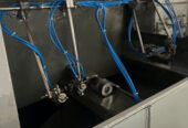 Profile podawane są za pomocą przenośników taśmowych odpornych na rozpuszczalniki.